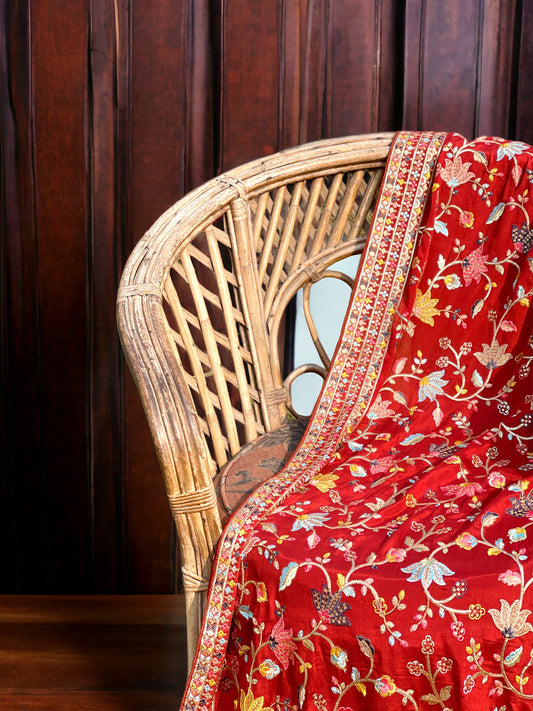 Kashmiri Embroidered Chiffon Dupatta/ Shawl